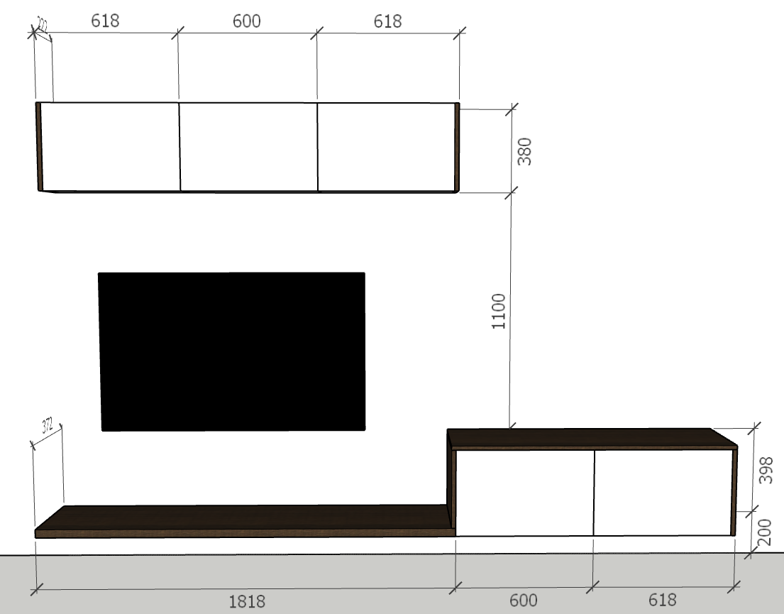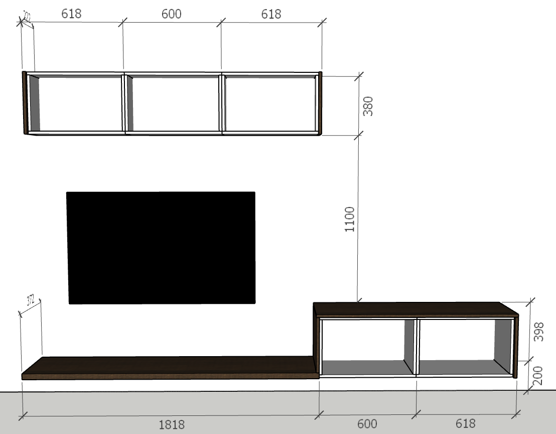 Tủ Tivi treo 380, thùng - 600X200X380 Mã: TTV602038T